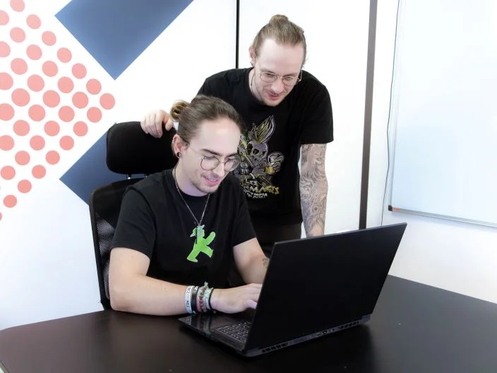 Des développeurs sont face à un écran et certains d’entre eux sourient